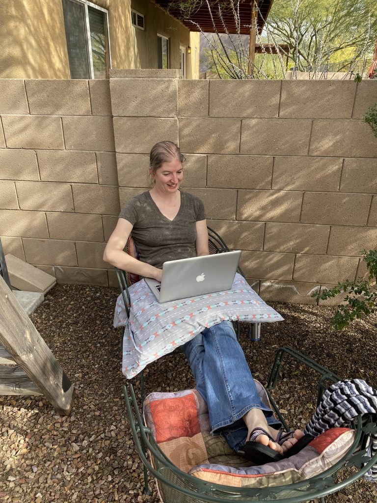 When I start getting cross-eyed from writing code, I go for a walk, read a book, or go see a movie. One of my goals for our time in Arizona is to go for a walk every day. Walking is good for the body, of course, by keeping everything moving and flowing, but I’ve found that it’s good for my mind as well. Whether I’m wandering through a neighborhood or on a path, my mind takes the opportunity to wander. When I’m just strolling through a neighborhood, I can see the different landscaping ideas people have had (oh, they’ve arranged their stones to look like a creek… oh, this house has trees and shrubs I haven’t seen before…) and the shapes and states of the homes (wow, they keep everything in straight lines and well manicured… oh, they must be very busy people if their Christmas and Halloween decorations are still strewn about the yard…) When I go hiking through nature, I sometimes spot the occasional lizard darting about, wondering where it’s headed, or dream about the shapes and condition of the cacti and brush. Why do some saguaro plants grow side arms on opposite sides while others seem to branch out in clusters? What kind of bird burrowed in and built their nest there? What were the climate conditions that caused that tree to twist and contort the way it did? Does that cloud look more like Snoopy’s head or an ice cream cone? When she’s not too busy writing an article before its deadline, Zibby will join me on these walks and we hypothesize together the answers to these questions and more.