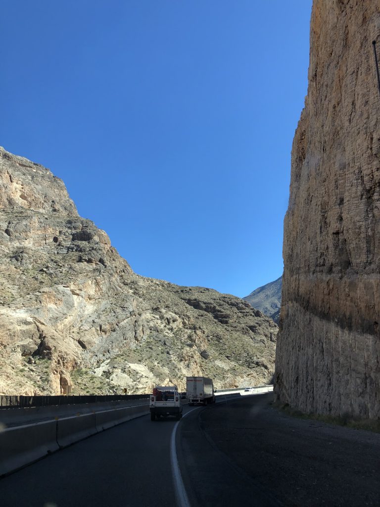 Friday morning, we packed our things and headed north toward Ogden, UT. The landscape through Nevada and southern Utah is just gorgeous – red rocks, valleys, and plateaus galloped by as we drove toward snow capped mountains off in the distance. At one point, the earth struck straight up on either side of us, the road carving through a trench hundreds of feet high, sheer faces on either side of the car. I listened to podcasts and gaped at the beautiful scenery while Zibby split her time between writing articles and gaping, awestruck, right alongside me. By the time we got to St George, we were both hungry for lunch and the car was ready for some fuel. After gassing up, we found Viva Chicken, a Peruvian restaurant, and had one of the best lunches in recent memory. Zibby had a Tacu bowl, with jasmine rice, beans, shredded chicken, marinated tomatoes and onions. I had the Arroz Chaufa, a fried rice bowl with peppers, onions, jasmine rice, shredded chicken, and soy sauce. They were both flavored with herbs and spices that made the flavors explode in our mouths and left us wishing our bellies were bigger so we could have more. I ordered a Chicha Morada – Peruvian purple corn, cinnamon, pineapple, apple and lime – to drink and it was like nothing I have ever tasted, so delicious. Back in the car, we were making good time as we drove through Provo, Salt Lake, and finally to Clearfield where we found a hotel for the night.
