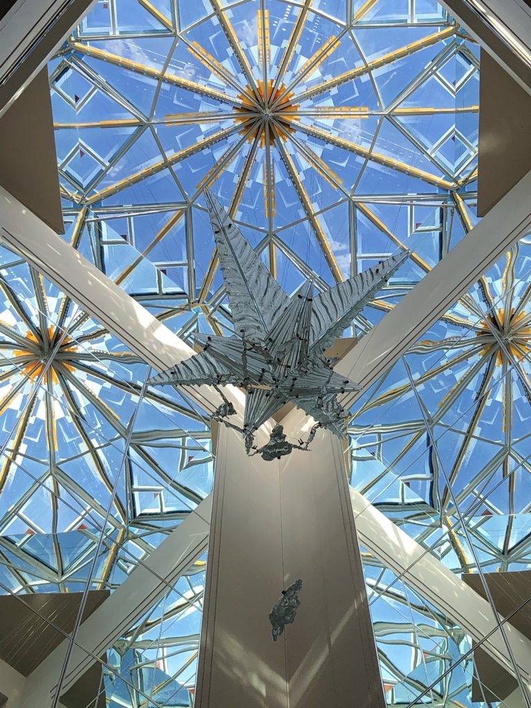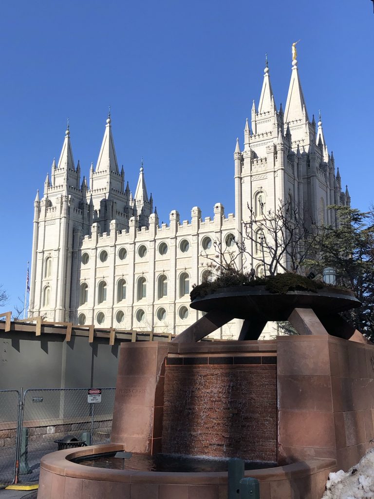 Morning came too quickly on Sunday, but we didn’t want to miss the free cereal and coffee breakfast that the hotel provides, so we pried ourselves out of bed and shuffled down to the overcrowded lobby. After breakfast, I did a little reading while she did a little writing, then headed downtown around noon to Temple Square. The architecture, clean lines, and grandiosity of the temple and surrounding buildings is awe-inspiring. We saw a theater capable of seating 21,000 people that they use twice a year, a model of the temple (which you aren’t allowed into if you aren’t a certified member of the church) with a room whose purpose was for the original builders to congregate and discuss their plans – over a hundred years ago – which doesn’t see regular use, and a short film about a renovation that’s underway to isolate the temple from the ground below it, allowing an earthquake to move below it and leave the temple untouched. It’s amazing what a group of people, with a single focus and dedication, can accomplish when they pool their time, energy and resources to reach their goals. I wish humans could come together in this way to solve some of humanity’s big problems, without arguing about religion. Once we got hungry, we found a place called “Mollie & Ollie’s” that served bowls, wraps, and salads. We each got a bowl with veggies, quinoa or noodles, and a light sauce. This was another meal that didn’t disappoint, and we headed back to the hotel happy.