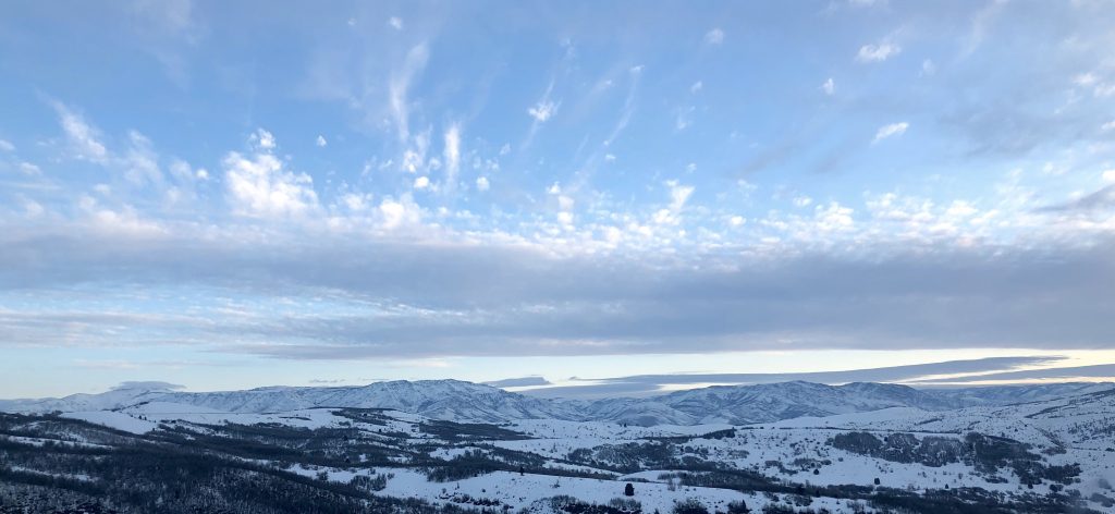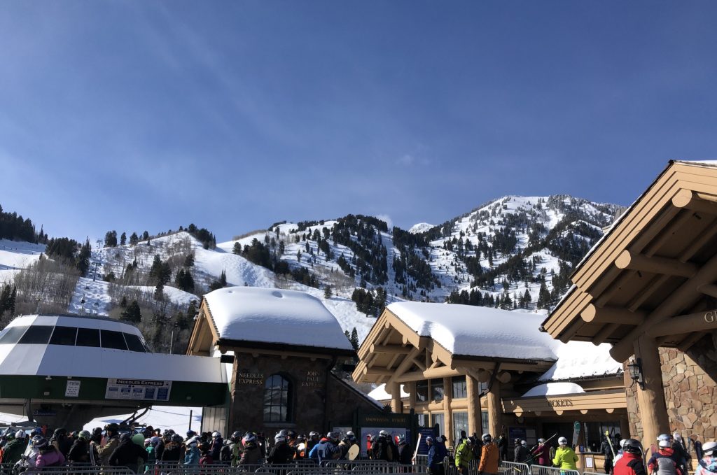 We headed up the mountain Monday morning to Snowbasin Resort, a ski and snowboard resort about 20-30 minutes from where we were staying. The drive up was beautiful, and we arrived early enough to snag parking right by the entrance. The lodge was very plush and warm, and I found a seat by the fire to change out of my gym shoes and into my boots. We got a lay of the land, found the gift shop and restaurants, and checked out the map to decide which lifts we wanted to take up and the route we wanted to ride down, then waited until 9am when the lifts opened. Usually, weekdays aren’t very busy but some of the manufacturers were onsite with demos for the shops in the surrounding states to try out next year’s models. That meant the lines had about 10 minute waits instead of getting right on the gondola. We got up pretty quick, though, and took in the beautiful sun-kissed views on our way to the top. After a couple runs, our friend Timmy met up with us and showed us some more of the mountain. Zibby took a break to clean the snow out of her jacket and mittens while Timmy and I made another run. The clear, sunny skies got s0cked in by clouds rolling against the mountains on our way up, making visibility a little more challenging on that run. After finding Zibby by the fireplace, the three of us checked out the weather and decided to call it for the day, as the visibility looked like it was just going to keep getting worse.
