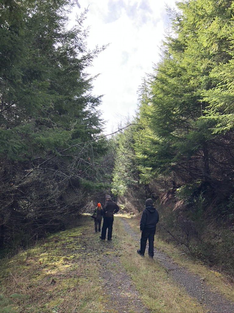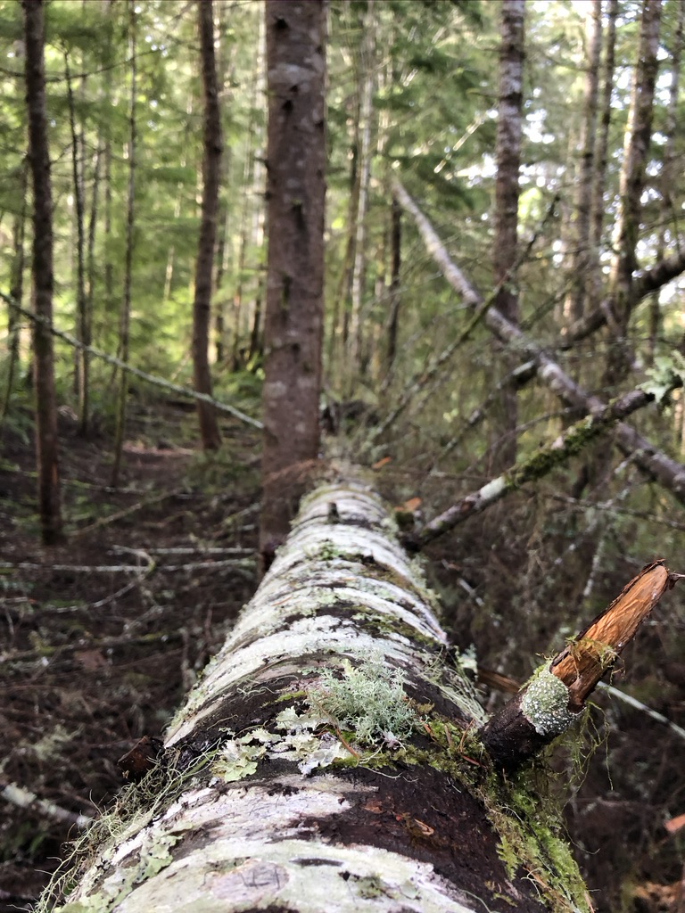 I awoke on my birthday in a yurt, with my beautiful partner snuggled up to me, birds chirping and logging trucks in the distance, and no signal whatsoever from the outside world. After a few minutes comparing the warmth we had under the covers to the cool air outside the covers, our need to pee made the decision for us and we worked our way from the warm bed to some thermal layers and (eventually, from body heat…) warm clothes. After our morning routines, we met Orion down at the kitchen and had some breakfast. Robin wasn’t feeling well, so Orion checked in on her every now and then to make sure she didn’t need anything other than a warm Leroy to snuggle, which she already had. Orion and I gathered and chopped some wood while Zibby got some work done. After warming up and having lunch, Orion and I headed up into the trees to look for some mushrooms and check out the land with Leroy. It was like being a kid, climbing over fallen trees, digging in the mud, and trying to play hide and go seek with the fungus. We didn’t find much of what we were looking for, although he pointed out some new varieties of mushrooms that he’d learned about since last time I was here. Leroy did a great job of trying to help whenever Orion would find a mushroom and try to carefully dig it out. Leroy would run over and pounce on the spot, then swipe his paws at the dirt to dig out whatever it was that Orion was looking for. It was like a blind elephant trying to operate a bulldozer to dust off a fossil. While we didn’t find many mushrooms that day (some were past their prime, some were too wet, many were just the wrong variety), we had a great time and got some fresh air and exercise. Back at camp, we cleaned up a little then grabbed Zibby and headed into town for a couple errands and to meet some of Orion’s friends at their local watering spot. A fun little bar that had just changed owners, we sat out on the fenced patio for a couple drinks and stimulating conversation. We heard a little about the new owners and what the locals liked and disliked about the changes they had made, some breweries in town and where to find good cake before grabbing some groceries and heading back to the homestead. Robin made another delicious supper with mushrooms, fettuccine, and a cream sauce that, combined with some whiskey and the late hour, left us all satiated and sleepy.