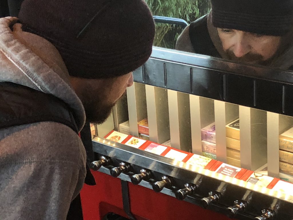 After a stop in the gift shop, we headed to the car for a light snack and move along to the next part of our adventure. Traffic was relatively light heading back into town, and our conversation about how much fun we’d just had helped pass the time quickly. We headed to Radio Room, a restaurant and lounge located in the Alberta Arts district for some dinner and people watching. The mac and cheese didn’t disappoint, nor did the art on the walls and retro look and feel of the place. We even got a little piece of art to take home from a repurposed old cigarette vending machine.