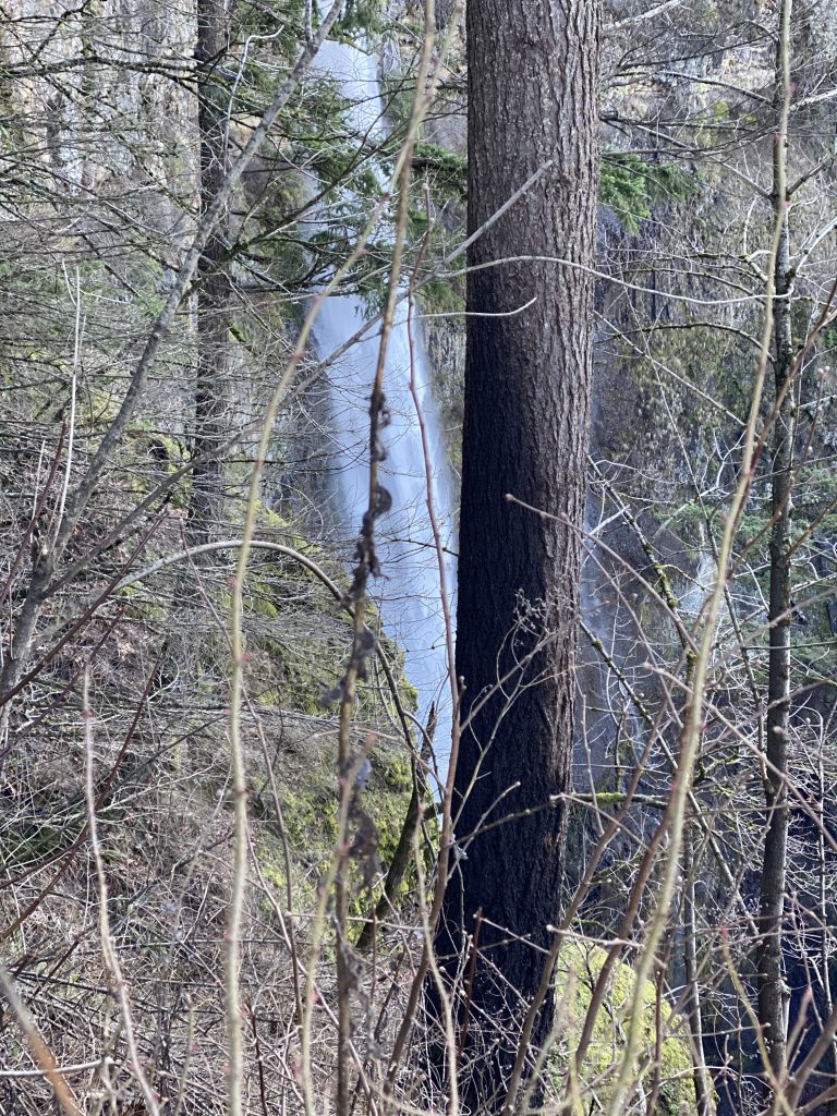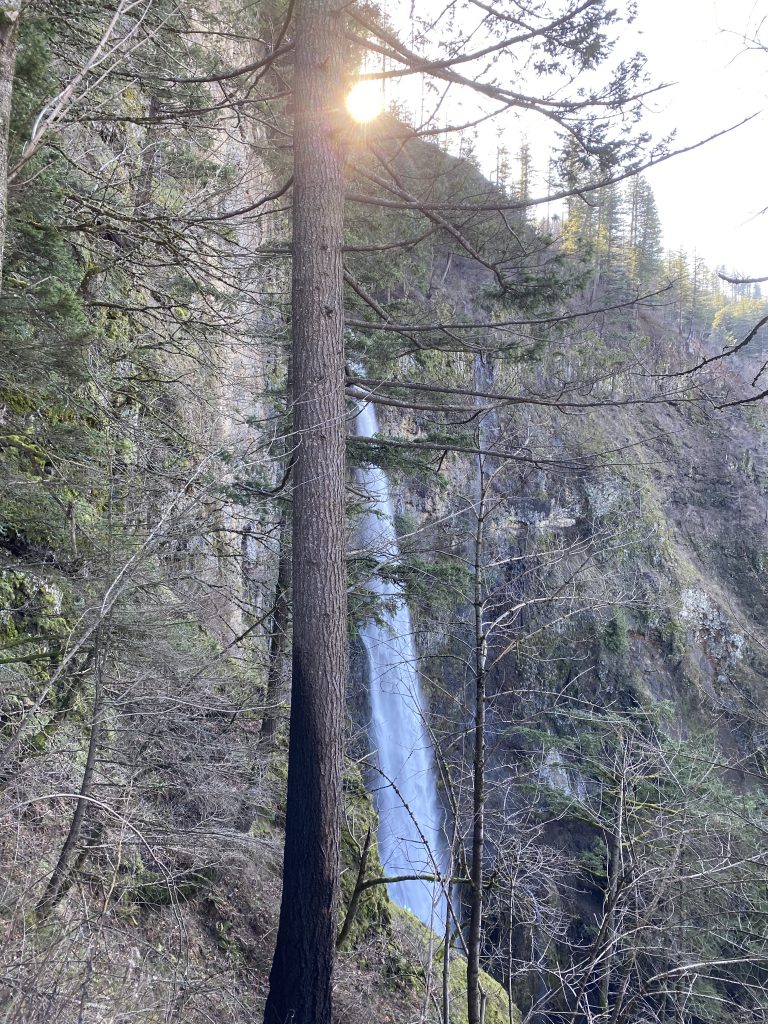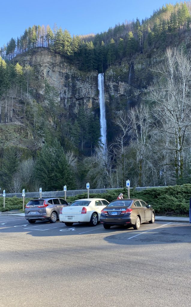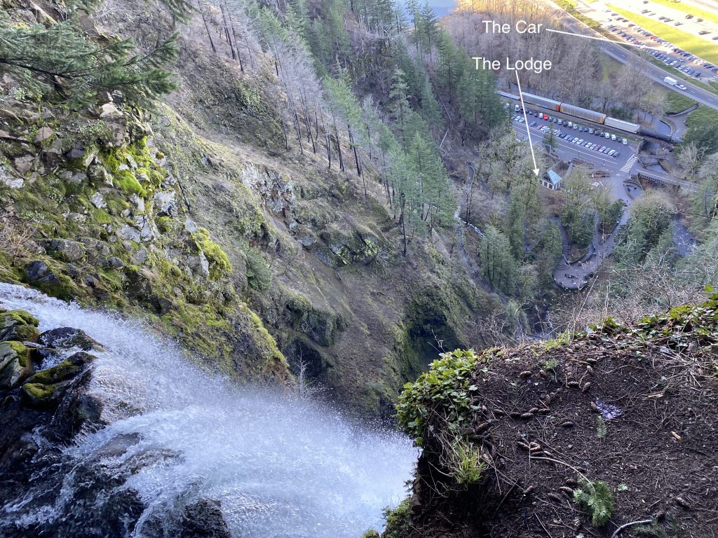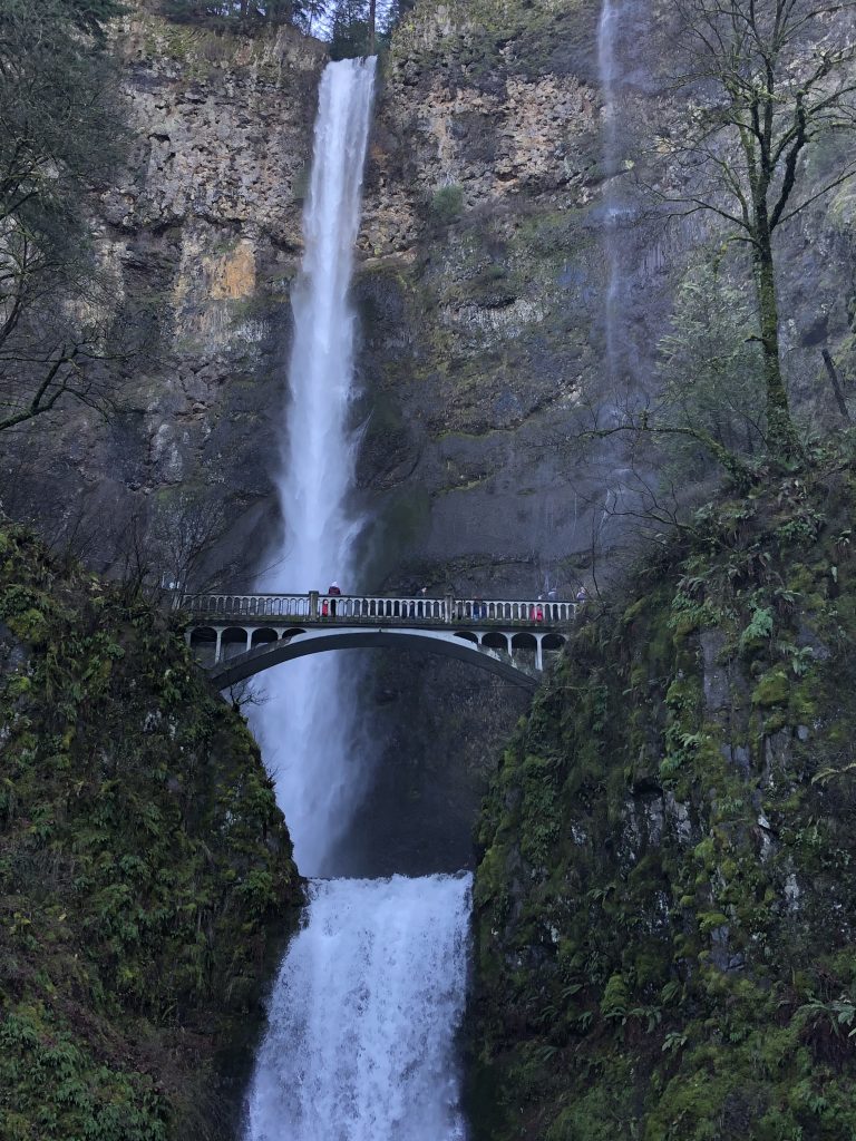 We were both up early the next morning, when Zibby got some work done and I read some more of my book,. Around lunchtime, we loaded up the car and headed to Multnomah Falls, a 611 foot waterfall about twenty minutes east of town. A short walk from the parking lot in the median of I-84 (where we walked through a tunnel under the highway), we stood at the lodge in awe. The falls loomed above us, partially hidden from view by the trees and rock carved over centuries by the powerful waters. A light mist in the air, even from this distance, spoke the power and magnitude of the falling waters.