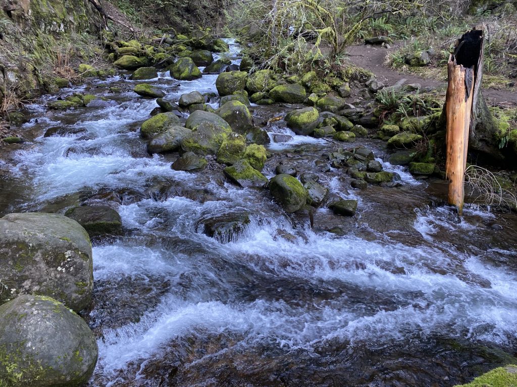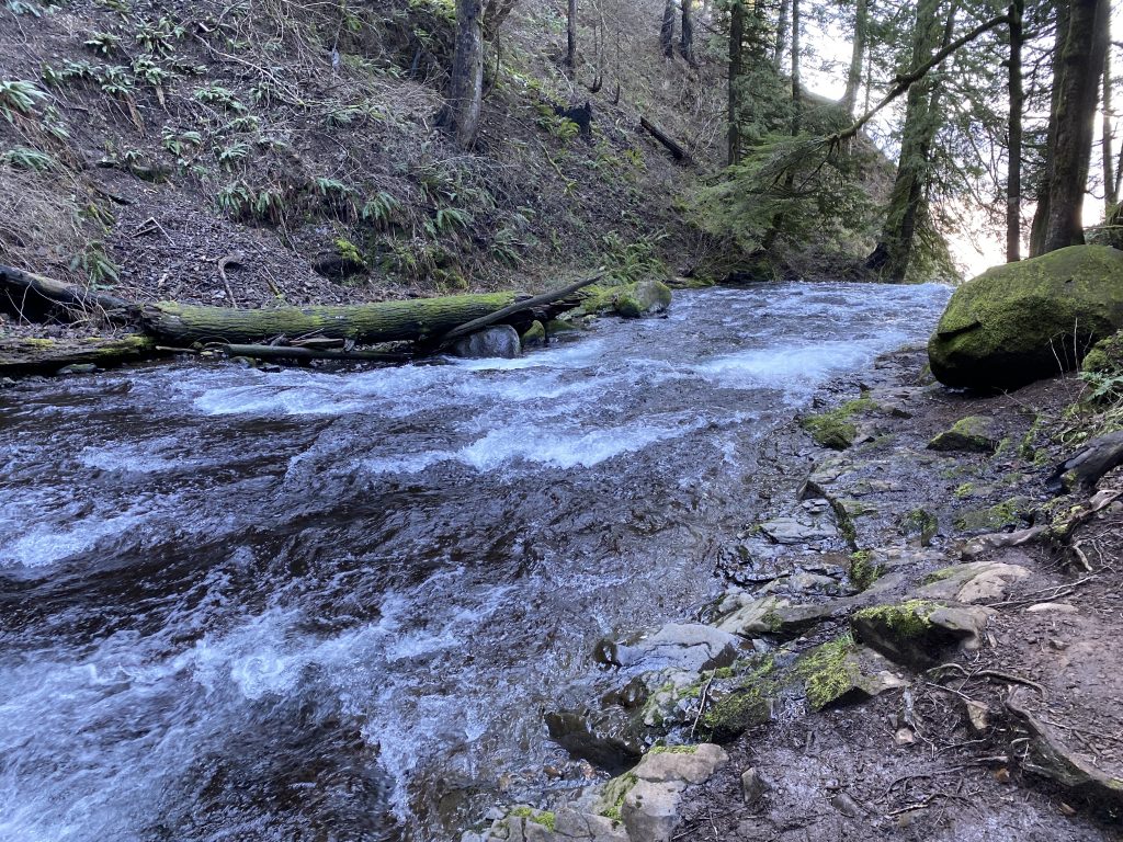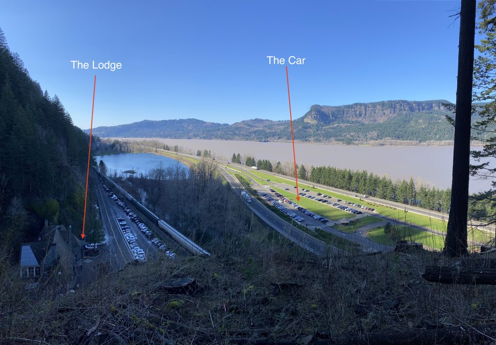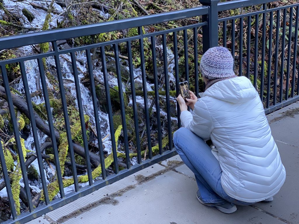 We were both up early the next morning, when Zibby got some work done and I read some more of my book,. Around lunchtime, we loaded up the car and headed to Multnomah Falls, a 611 foot waterfall about twenty minutes east of town. A short walk from the parking lot in the median of I-84 (where we walked through a tunnel under the highway), we stood at the lodge in awe. The falls loomed above us, partially hidden from view by the trees and rock carved over centuries by the powerful waters. A light mist in the air, even from this distance, spoke the power and magnitude of the falling waters.