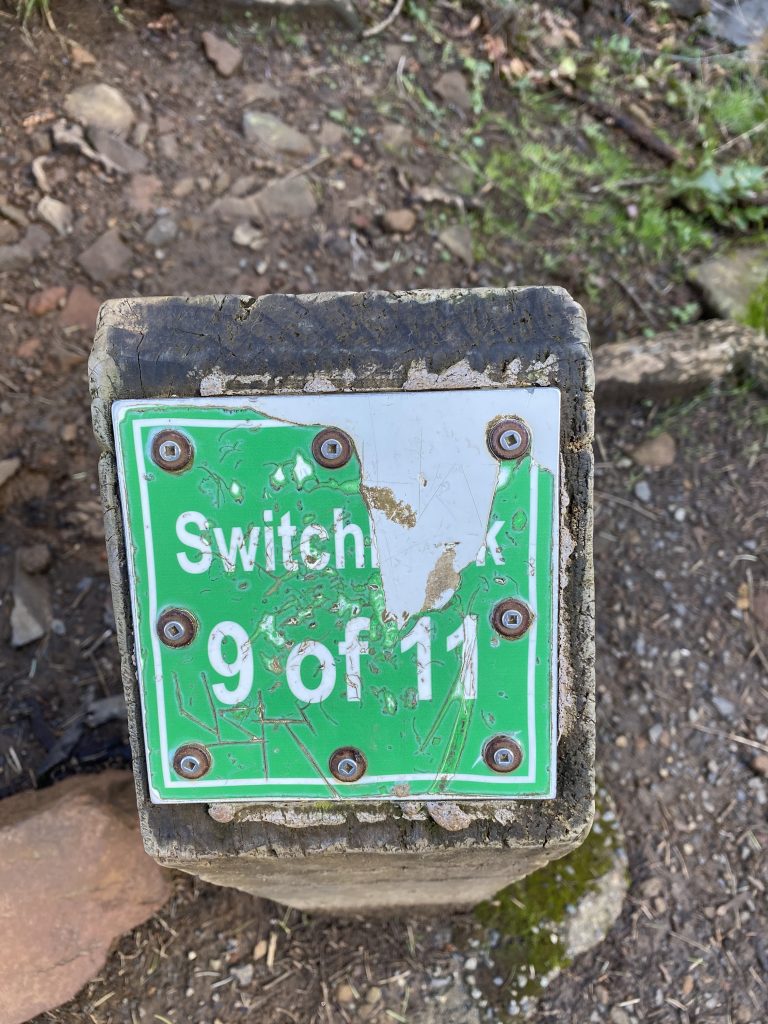 At the half mile marker, we found a level clearing with some benches to take a rest. Zibby was cold and out of breath so she decided to turn back toward the lodge while I foolishly plodded ahead. I was determined to see the top, so I pushed on while she headed for warmth. The pavement wore away further as I climbed, buckling, cracking, and missing altogether to show the beating it has taken. I counted the switchback markers when I saw them, hoping the next one I saw would say 11/11, but sadly they were not evenly spaced. When I passed 9/11, I asked the people walking the other way if I was almost at the top. They assured me that it wasn’t too much longer before I’d be headed back down. I didn’t realize that they meant the path peaks, then descends before winding its way to the observation deck, but I finally made it to a short set of stairs that led down to the observation deck. The half dozen or so people all took turns taking pictures and staying out of each other’s way. A couple and I took turns trading phones and getting pictures of each other as the rest of the crowd dissipated.