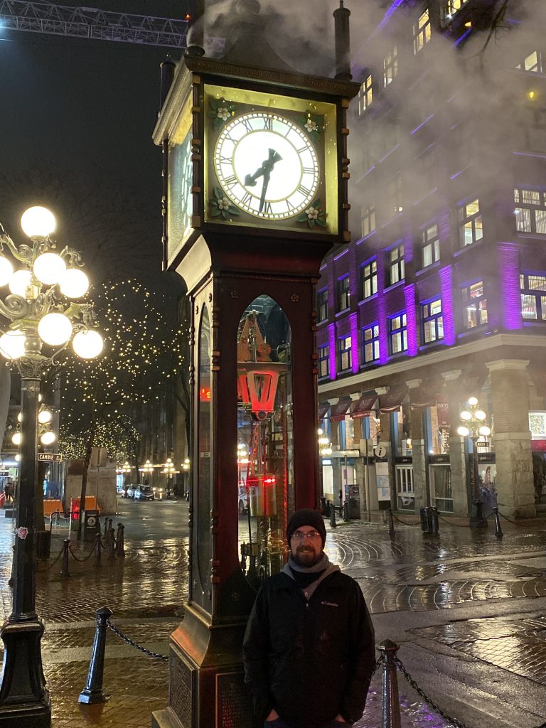 Oh, and the dinner we had was Amazing! We found a little Lebanese place, Nuba, tucked in the basement of a big residential and commercial building. The place was packed, especially for a rainy Tuesday night, but we were seated almost right away at a candlelit romantic table for two. We decided to split a few smaller dishes so we could try the greatest number of new and interesting flavors. Our fest began with Mama Dallou’ah, a Roasted beet dip with garlic, pomegranate, lemon, and tahini, topped with walnuts. We took turns dipping little triangles of flatbread and raving about how delicious it was. With perfect timing, our waitress brought us some Falafel just as we finished savoring our last triangle of the beet dip. The spices were well balanced, the flavors popped, and each bite was the right temperature and texture. That was paired with some hummus and a basket of pita, which we used to wipe up the last of the Dallou’ah. The meal was finished off with some Chicken Shish Tawook, subtly flavored skewers of chicken that just melted in our mouths. Satiated, we reluctantly left our comfortable, warm environment to explore more of Gastown. I really enjoy seeing the different people going by as we stroll vibrant neighborhoods like this one. People of many ages, races, and cultures meld together to provide an electric vibe, the sum greater than the parts. The cobblestone streets and sidewalks, the classic architecture, and the unique shops all served to transport us back to a yesteryear that we usually only see in movies. After stopping in a few shops and discussing what it might be like living here, we came to the Gastown clock. We took turns getting pictures in front of the historic steam powered clock, which releases a puff of steam and whistles on the quarter hour, with a more elaborate show on the hour. The clock was originally built in 1977, designed to look like a remnant of the 19th century. In addition to its classic look, it was built to keep the homeless from sleeping on the warm grate, part of a steam distribution system that heats most of the downtown core. Exhausted from all of the walking we had done in the past couple days, we found our way back to the car and headed to the hotel to rest up for the next day’s adventure.