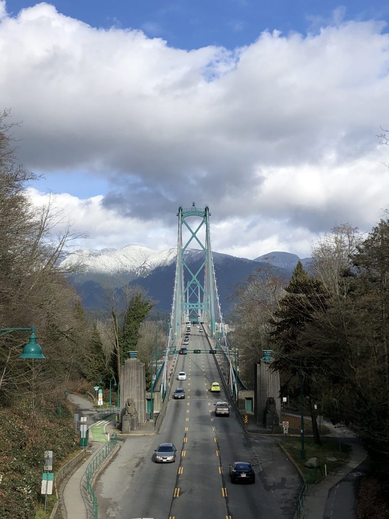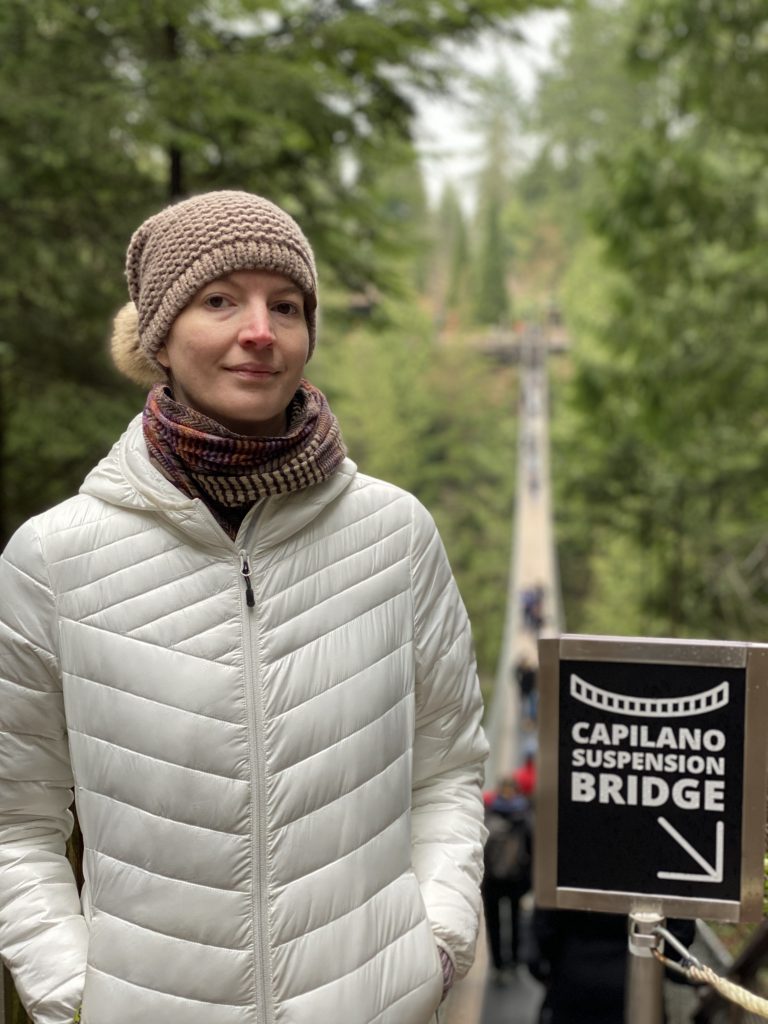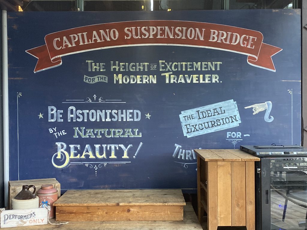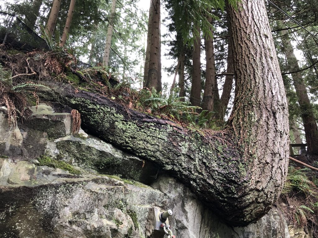 I think I’ve mentioned this before, but Zibby LOVES bridges. We look for them whenever we road trip together, and even took a day trip for her birthday last year to drive across the Chesapeake Bay Bridge-Tunnel when we were in Virginia. I surprised her on Wednesday with a trip to the Capilano Suspension Bridge Park, just up the road from our hotel. The namesake feature is a pedestrian suspension bridge, 450 feet long and 230 feet above the Capilano river. The view is gorgeous looking down at the river rushing below as the bridge sways to and fro. The joyful smile on Zibby’s face, though, was even more rewarding. The bridge is suspended by thick steel cables, anchored by concrete piers on either side. In 2006, one of the massive trees toppled over from a perfect storm of rainfall that softened the ground followed by wet heavy snow that weighed down the branches. The tree landed on the bridge and move the anchors two meters, but the steel cables held and the bridge survived! They carefully removed the tree, then sank even larger anchors and reinforced the bridge further. Knowing all that, we felt entirely safe walking across this bridge capable of holding several 747 airliners.