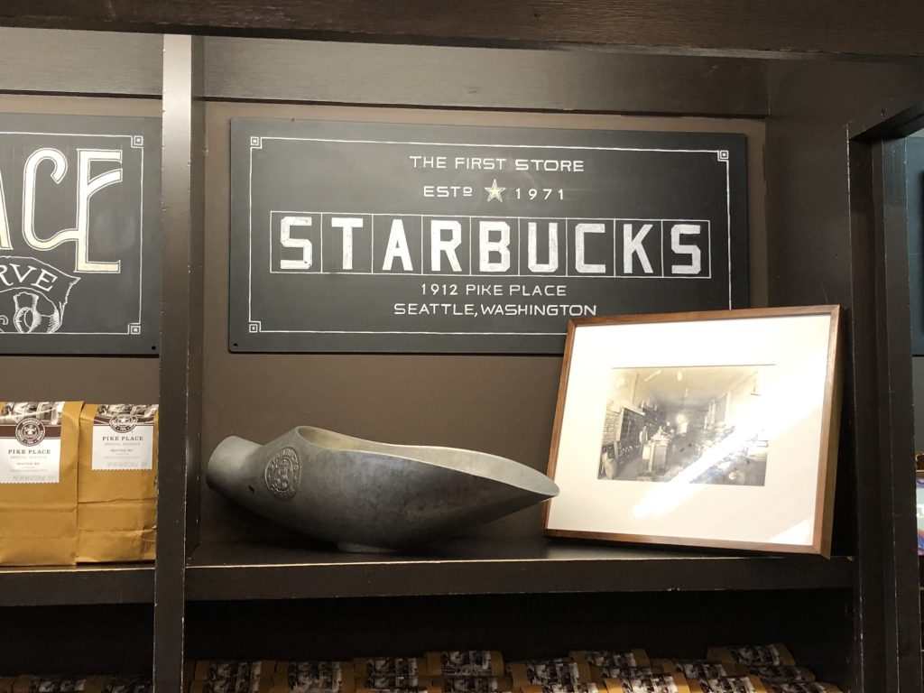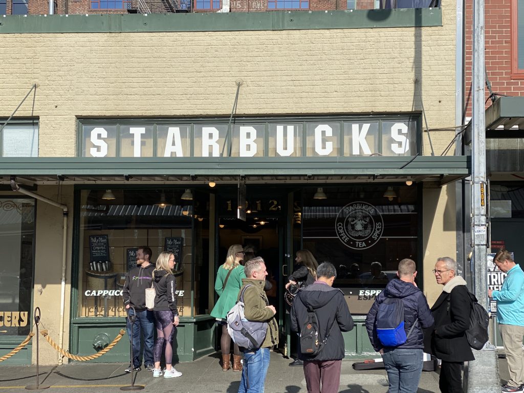 Down the block, we got in line to go into the first Starbucks. It’s very small and still has the original flooring, light fixtures, and counter, required as it’s now a historical landmark. The line didn’t take too long, and everyone was friendly and chatting as we each waited our turn. Zibby got a coffee to go, then we were soon doubling back on some of our earlier trek to decide which bakery would be chosen for our dessert. The smells were fabulous as we walked in and out of each spot, perusing their wares, and moving on to see what else we could find. We ended up at a small shop with their counter on the sidewalk, where I chose a big cookie and she decided on a cinnamon bun. With our sweets in hand, we kept moving down the sidewalk, absorbing the sights, sounds, and scents of the world around us. With one more stop to get some flavored greek yogurt for my breakfast tomorrow, we traipsed our way back to the car to go see more of Seattle.